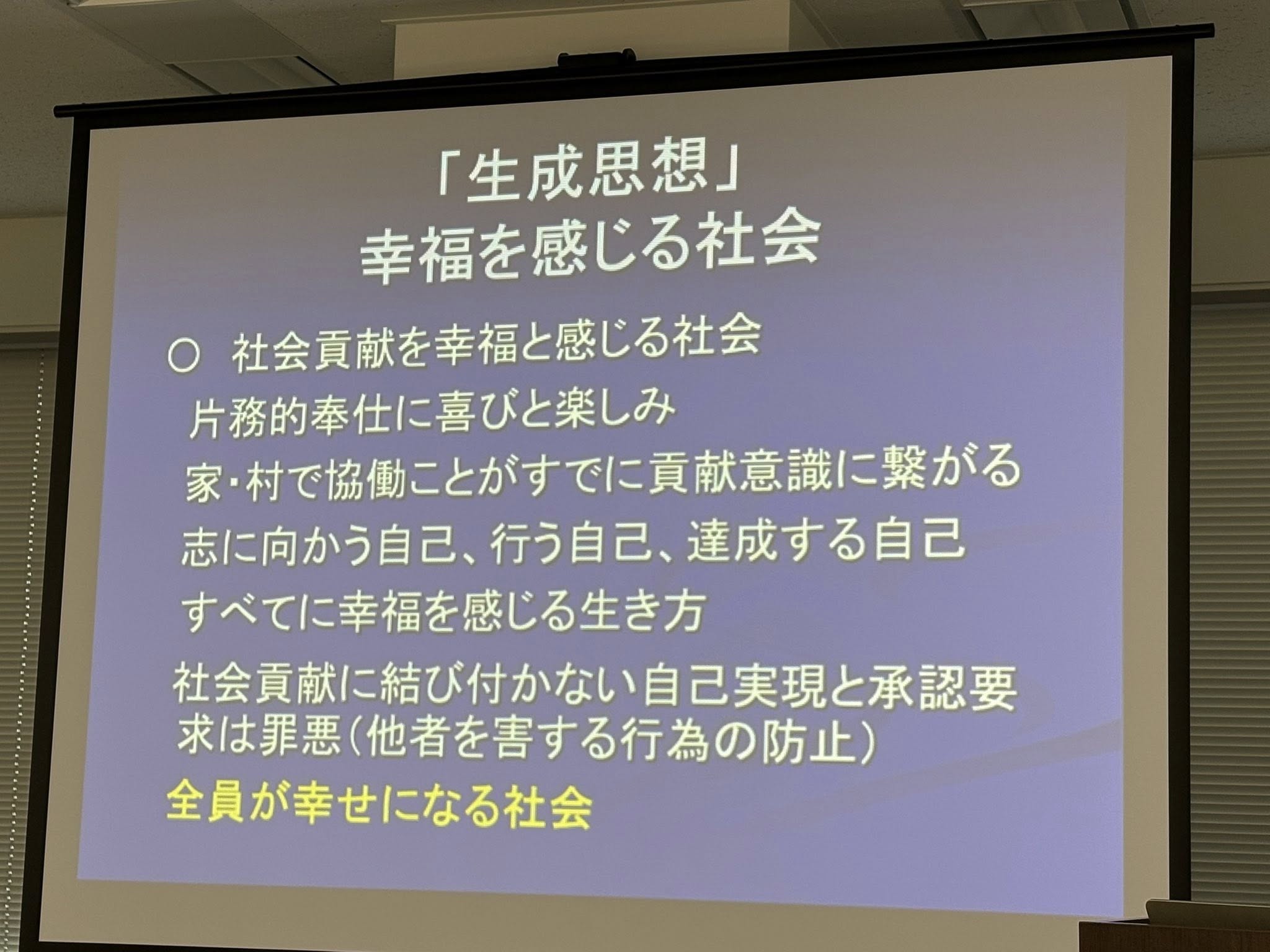 万物万有の生成発展こそが成長という考えであり、生成思想は「宇宙大調和の実現」を目的にしています。