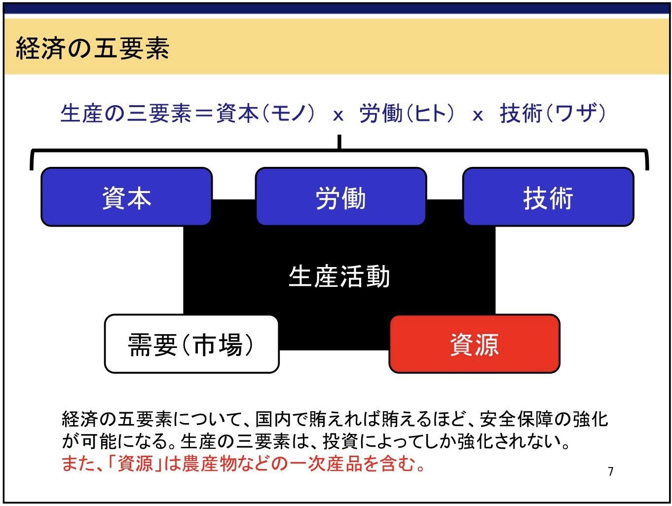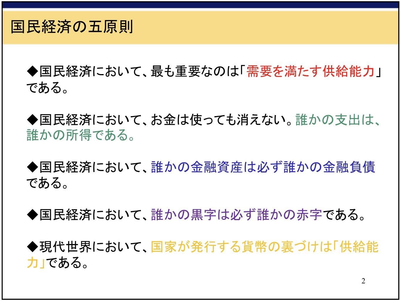 上記の「経済の五要素」と併せて「国民経済の五原則」のスライドの写真も貼っておきますが、我々は改めてこのことを肝に銘じておく必要がありますよね。