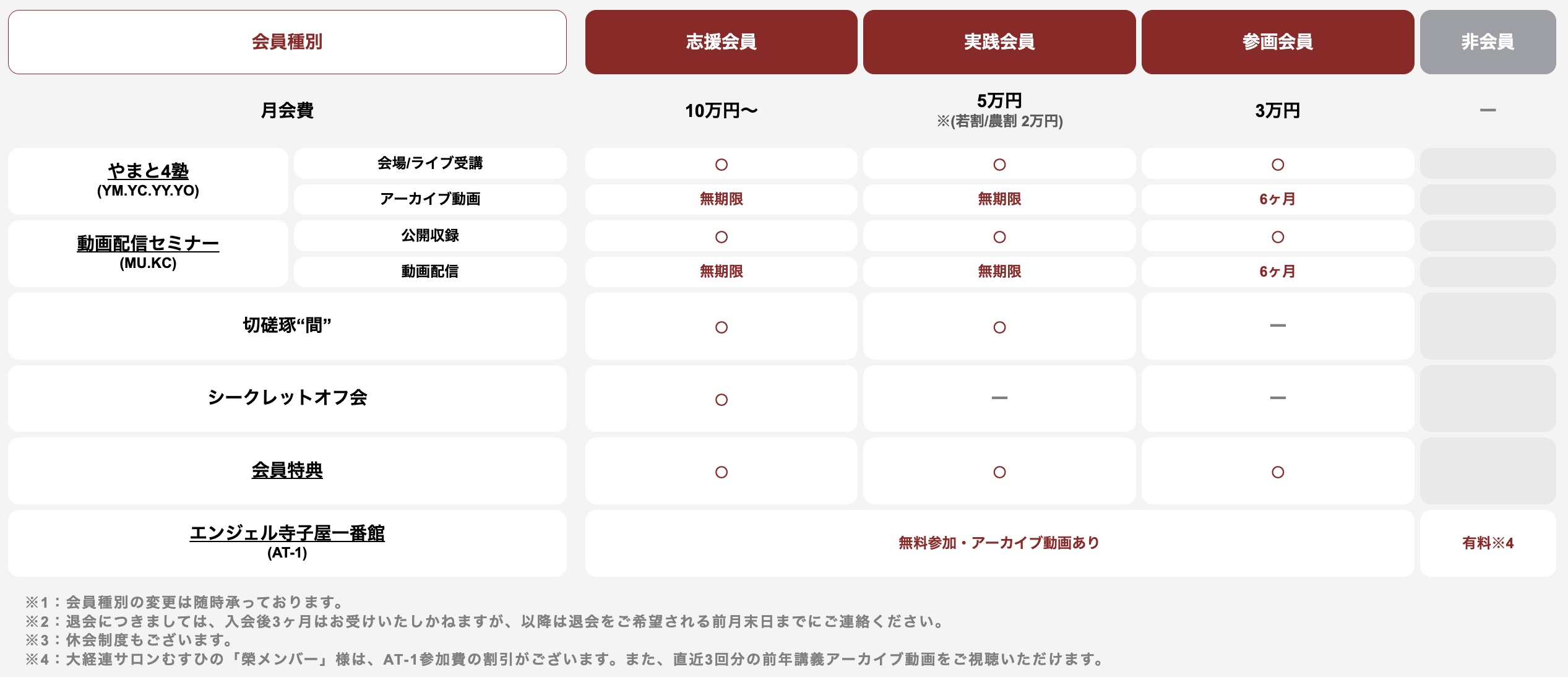 ※4:大経連サロンむすひの「榮メンバー」様は、AT-1参加費の割引がございます。また、直近3回分の前年講義アーカイブ動画をご視聴いただけます。